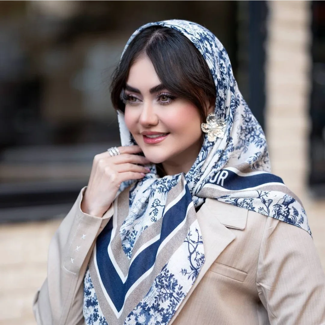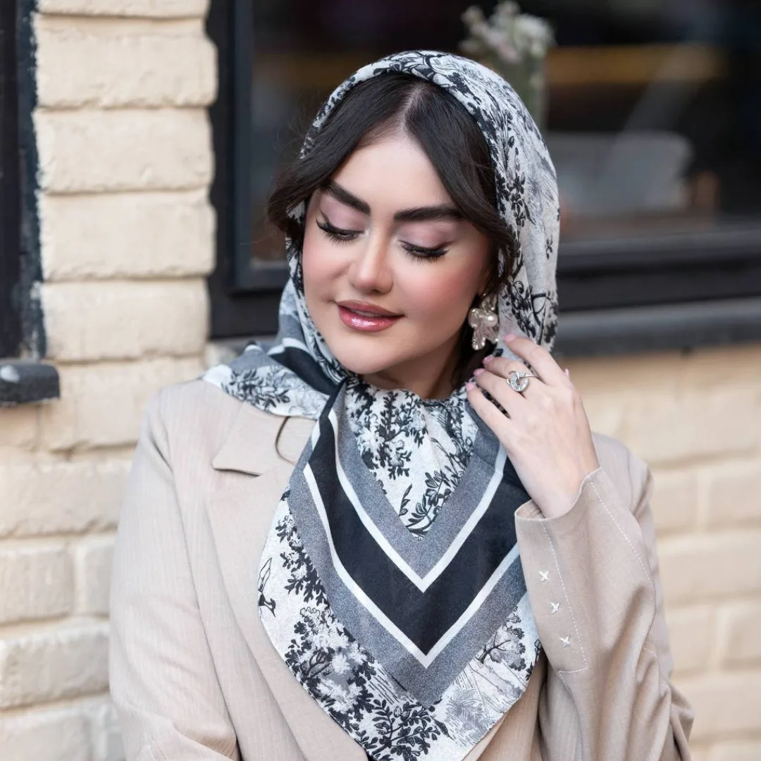 روسری نخی قواره ۱۰۰ پارچه سیا اسکارف گ۴ طرح شیک